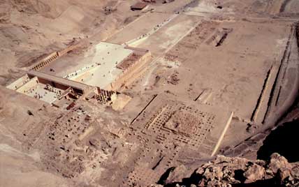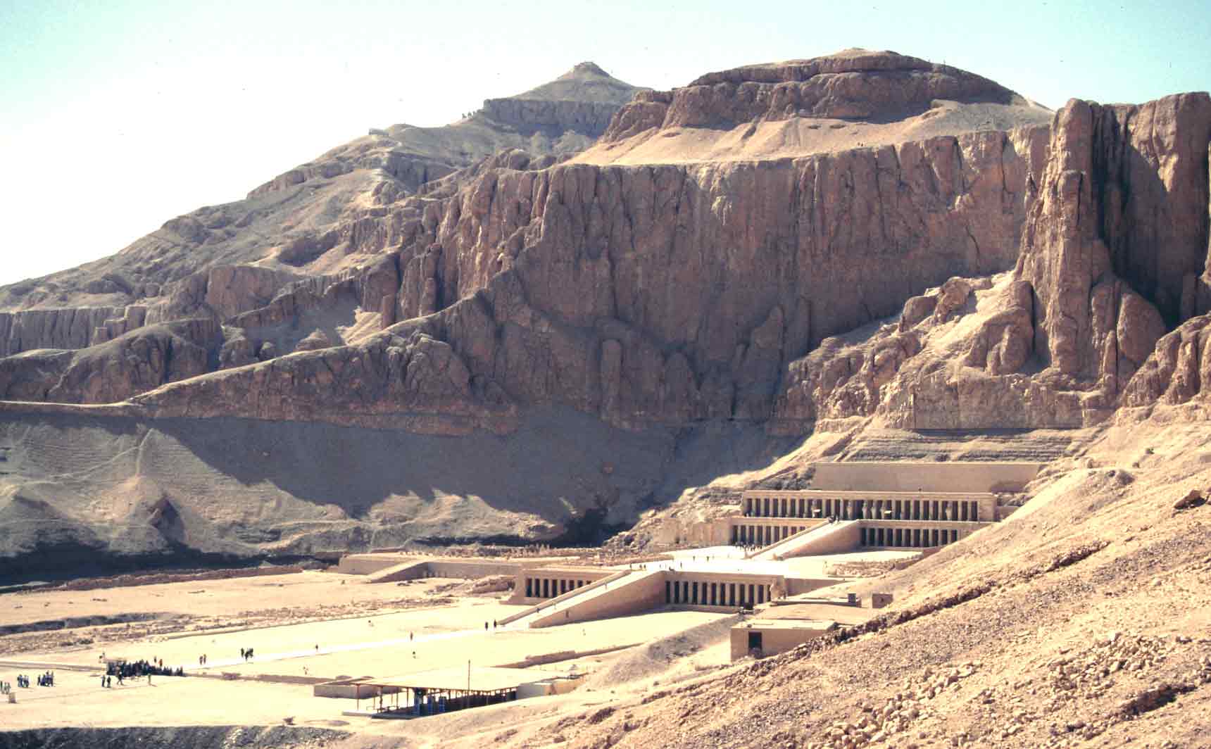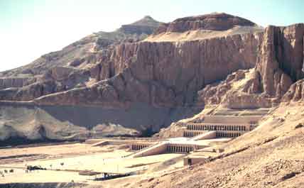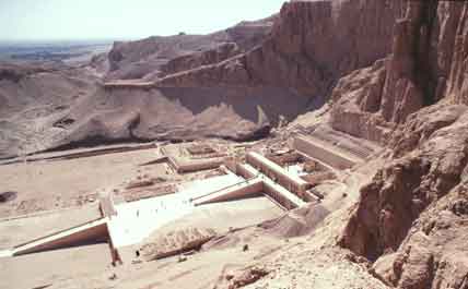 mortuary temple: Hatsjepsut’s tomb is on the other side of the cliffs,